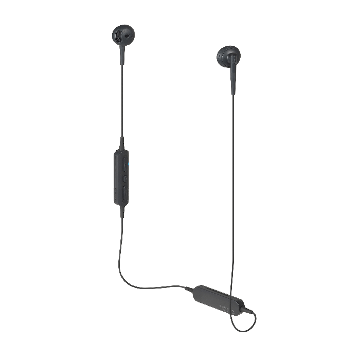 The ATH-C200BT in-ear headphones offer excellent Bluetooth® wireless sound quality at an exceptional value. These “open” style earbuds feature powerful 12 mm drivers coupled with specially designed sound tubes that control airflow to deliver full-range audio with enhanced low-frequency performance. Yet the open design also allows some ambient noise to get through so you won’t lose awareness of your surroundings. Silicon housings ensure a secure, comfortable fit. The headphones feature an in-line mic and controls, allowing you to answer calls, adjust volume and control music playback on smartphones and other devices. The ATH-C200BT’s design conveniently situates the mic and controls for easy access and places the battery case on the upper back where, if desired, it can be attached to your shirt collar with the included clip. The internal battery powers the headphones for up to 9 hours (200 hours standby) and can be recharged with the included 30 cm (12") USB charging cable. *The Bluetooth® word mark and logos are owned by Bluetooth SIG, Inc. and any use of such marks by Audio-Technica Corporation is under license. Other trademarks and trade names are those of their respective owners.