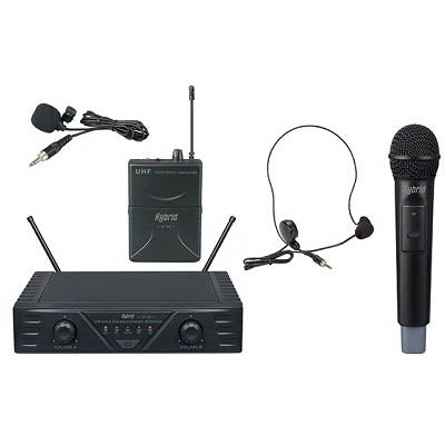 The Hybrid Mini DF Cordless Microphone System features a hand microphone and a bodypack transmitter with lapel and headset microphone options. It offers a versatile wireless solution for presenters offering the hand mic or headset or lapel option.