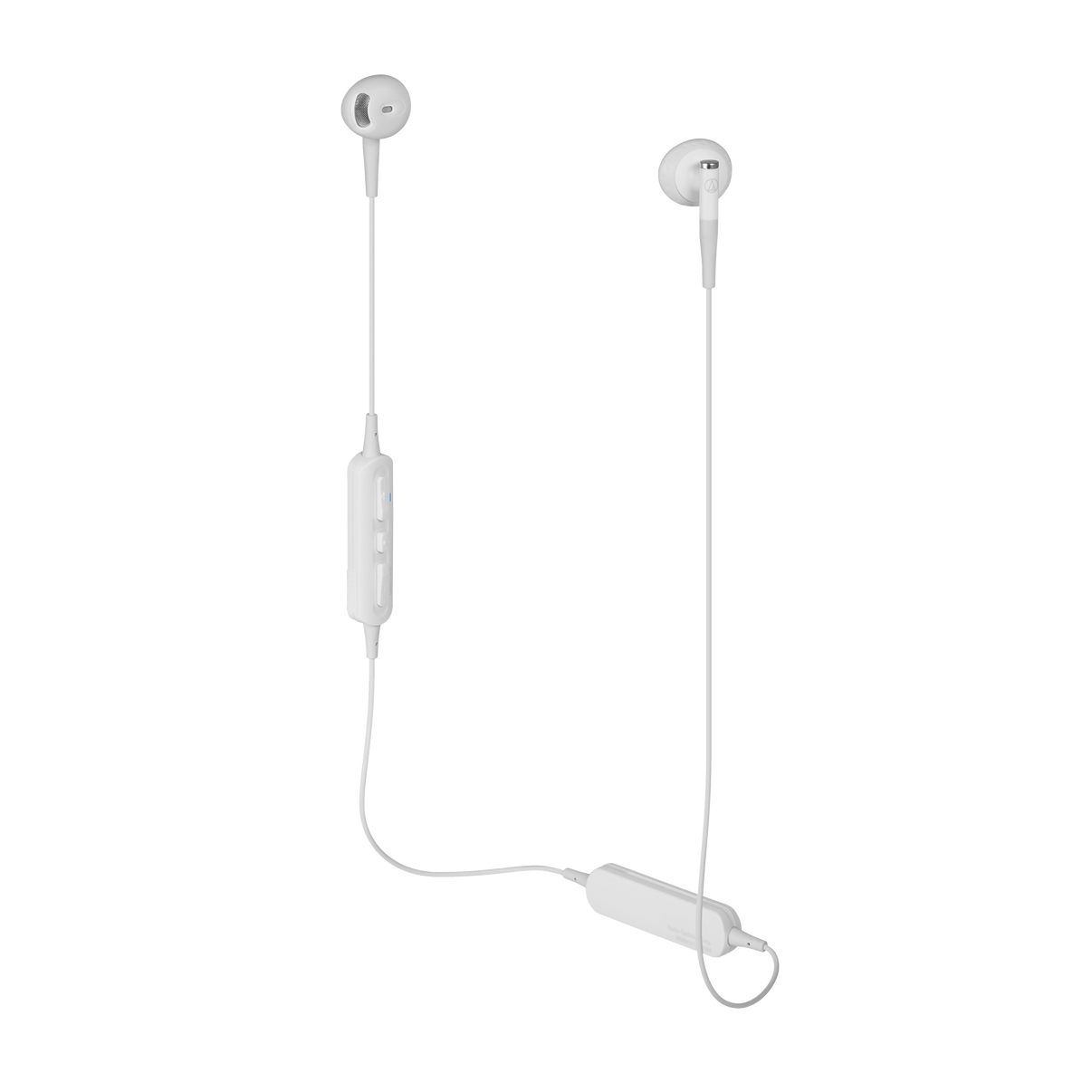 The ATH-C200BT in-ear headphones offer excellent Bluetooth® wireless sound quality at an exceptional value. These “open” style earbuds feature powerful 12 mm drivers coupled with specially designed sound tubes that control airflow to deliver full-range audio with enhanced low-frequency performance. Yet the open design also allows some ambient noise to get through so you won’t lose awareness of your surroundings. Silicon housings ensure a secure, comfortable fit. The headphones feature an in-line mic and controls, allowing you to answer calls, adjust volume and control music playback on smartphones and other devices. The ATH-C200BT’s design conveniently situates the mic and controls for easy access and places the battery case on the upper back where, if desired, it can be attached to your shirt collar with the included clip. The internal battery powers the headphones for up to 9 hours (200 hours standby) and can be recharged with the included 30 cm (12") USB charging cable. *The Bluetooth® word mark and logos are owned by Bluetooth SIG, Inc. and any use of such marks by Audio-Technica Corporation is under license. Other trademarks and trade names are those of their respective owners.