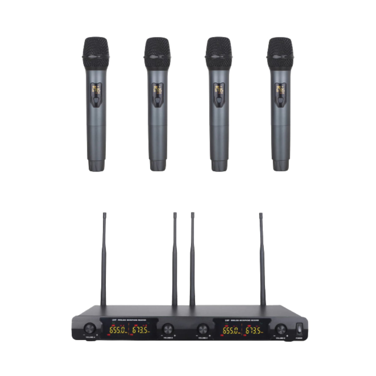 The Lane Pro M604 Is A 4 Piece UHF Wireless Microphone System With Selectable Frequencies And Balanced XLR Outputs.