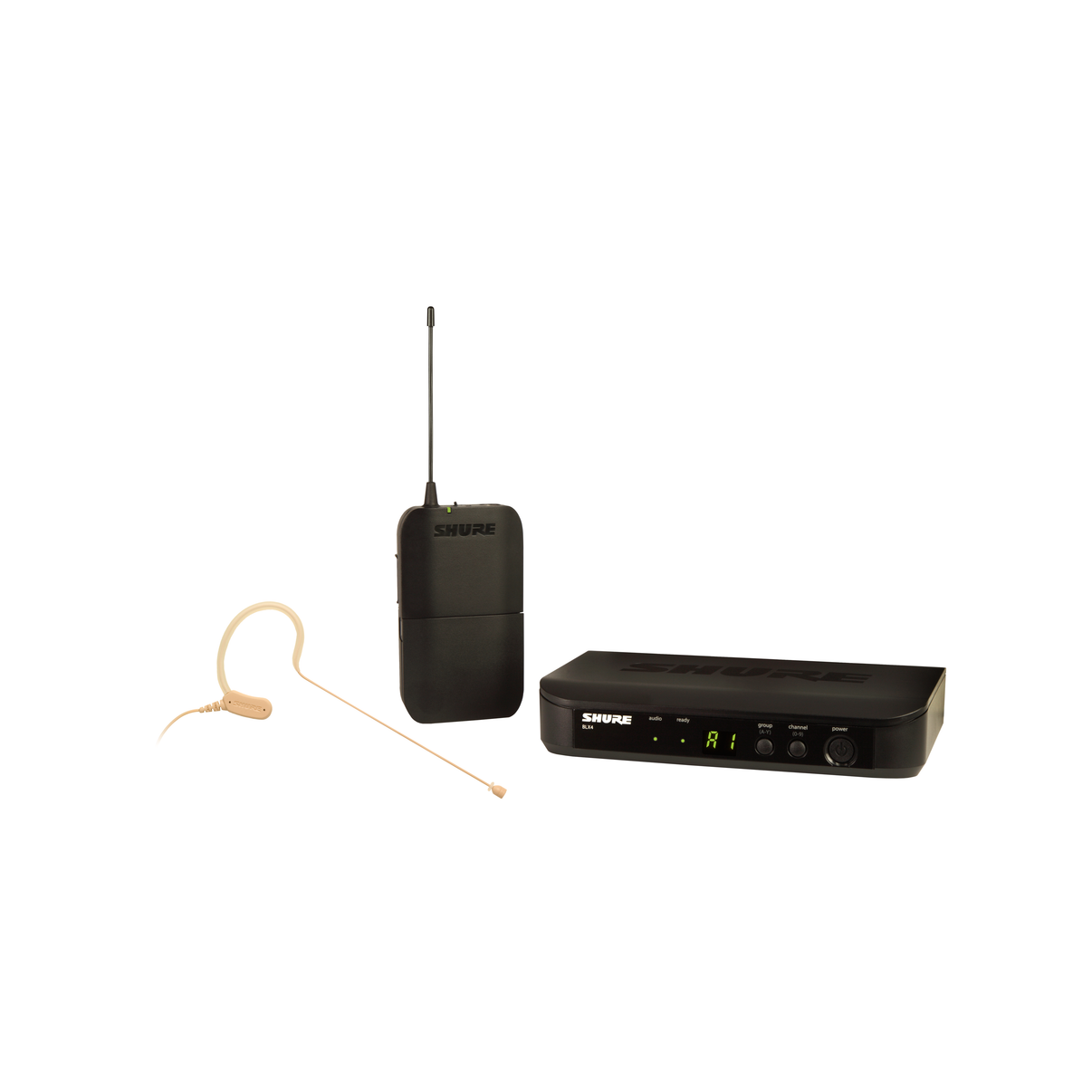 The Shure BLX14/MX53 Wireless Presenter System combines professional-quality sound with simple setup and up to 14 hours battery life for legendary audio performance right out of the box. The system includes BLX4 tabletop single-channel receiver, MX153 subminiature earset microphone with BLX1 bodypack transmitter, lavalier clip, power supply, 2 AA batteries, windscreens, and user guide.
