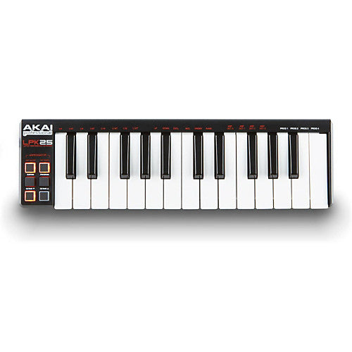 The LPK25 from Akai is a USB-MIDI 25-key mini keyboard controller that is a perfect fit for use with a laptop computer. It measures less than 13 inches across, weighs less than a pound and will easily fit into a laptop case, backpack or messenger bag for extreme portability.