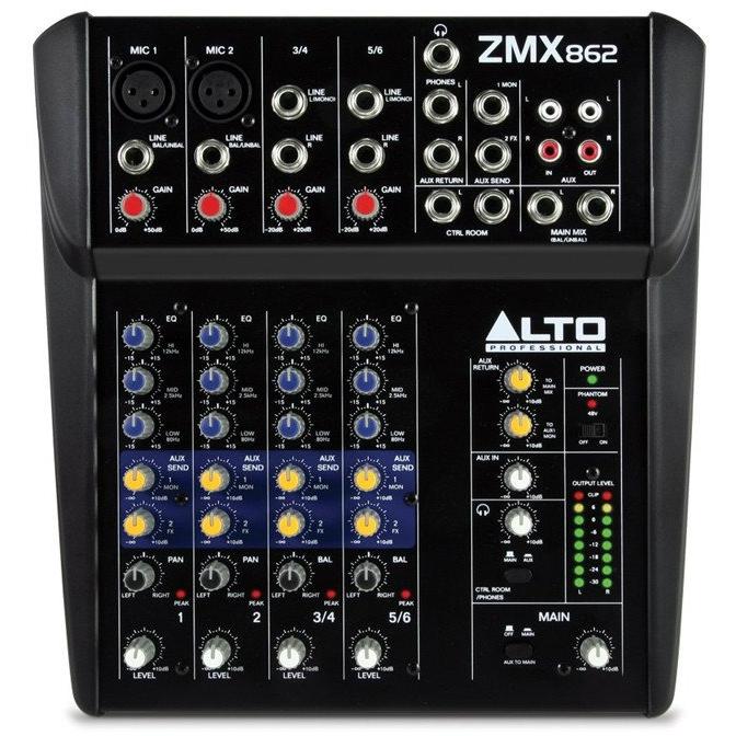- 12 total inputs including XLR jacks w/ phantom power on ch. 1 & 2