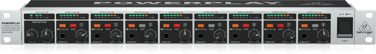 8-Channel High-Power Headphones Mixing and Distribution Amplifier Product Features POWERPLAY HA8000 V2 An articulate headphone mix can make all the difference in the outcome of a recording session. The 8-channel...