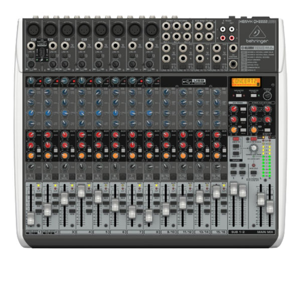 The feature-packed XENYX QX2222USB mixer allows you to effortlessly achieve premium-quality sound thanks to its 8 onboard studio- grade XENYX Mic Preamps and ultra- musical "British" channel EQs – with a semi-parametric mid band for warm and musical sound. And our easy-to-use "one-knob" compressors provide total dynamic control for the ultimate in punch and clarity, while respecting all the power and emotion you pack into every note. Add to this our KLARK TEKNIK FX processor with 32 studio-grade presets with dual addressable parameters, Tap function and storable user parameter settings – and the QX2222USB becomes an incredibly versatile mixer for your live performances.