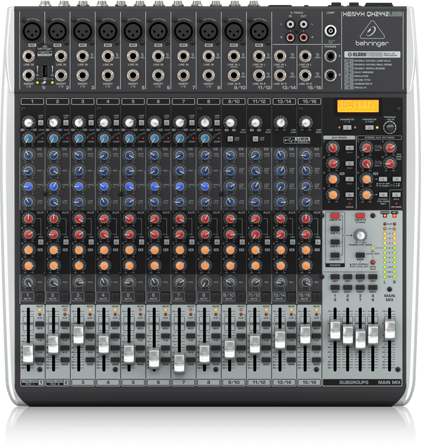The feature-packed XENYX QX2442USB mixer allows you to effortlessly achieve premium-quality sound thanks to its 10 onboard studio-grade XENYX Mic Preamps and ultra-musical “British” channel EQs – with a semi-parametric mid band for warm and musical sound. And our easy-to-use “one-knob” compressors provide total dynamic control for the ultimate in punch and clarity, while respecting all the power and emotion you pack into every note. Add to this our KLARK TEKNIK FX processor with 32 studio-grade presets with dual addressable parameters, Tap function and storable user parameter settings – and the QX2442USB becomes an incredibly versatile mixer for your live performances. But XENYX QX2442USB isn’t just designed to handle your live gigs; they also provide the state-of-the-art tools you need to make stunning, professional- quality recordings. Along with their built-in USB/audio interfaces, the XENYX QX2442USB comes with all the recording and editing software needed to turn your computer system into a complete, high-performance home recording studio.