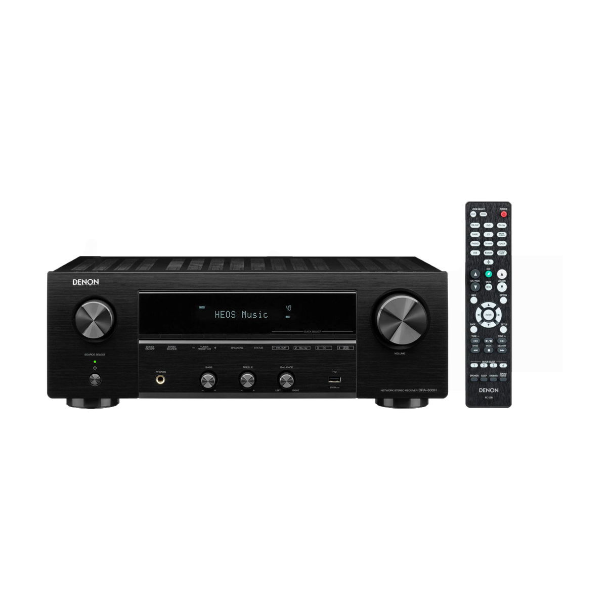 Enjoy Denon DRA-800H two-channel Hi-Fi network receivers high quality audio performance listening to analogue and digital sources. With FM/DAB+ radio, a wide array of connectivity including Phono input, network integration and HDMI you will upgrade your listening and home theatre experience. Featuring advanced custom amplifier design and a strong power supply, the DRA-800H ensures your loudspeakers drive detailed, precise imaging and impactful sound. With 4K Ultra HD HDMI and the latest wireless music streaming technologies (Wi-Fi, AirPlay 2, Bluetooth and HEOS Built-in), the DRA-800H integrates seamlessly with your TV, music services and Hi-Fi system. Enjoy network streaming and USB front-panel audio playback of MP3, WAV, FLAC, ALAC and DSD (2.8/5.6MHz) files. Equipped with A/B speaker terminals, dual subwoofer pre-outs, three digital and two analog inputs, one phono (MM) input and ARC for TV audio, the DRA-800H delivers a premium stereo listening experience for your music collection and home theatre viewing.