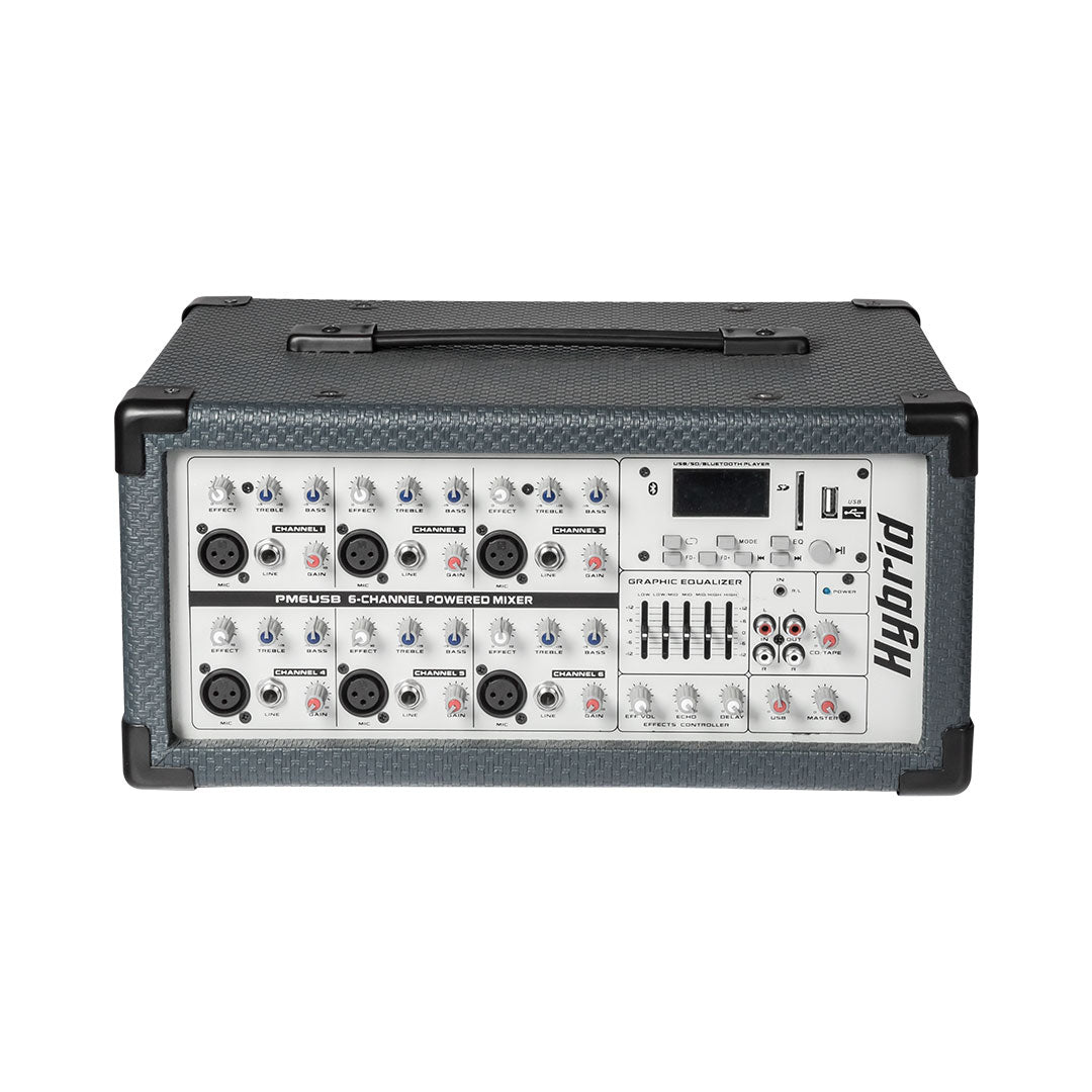 The Hybrid PM6USB is a 6 Channel, 200W Powered, small format, analogue live mixer.