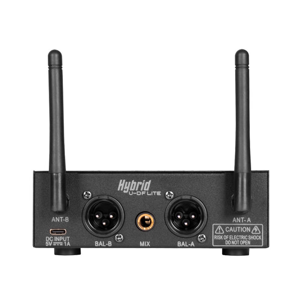 The Hybrid U-DF LITE UHF Dual Wireless Microphone System is a compact, high-performance audio solution ideal for speeches and events. It offers reliable UHF transmission with reduced interference, fixed frequency locking, and advanced chip computing for stability. Features like multilevel filters and audio compressing-expanding technology ensure clear, dynamic sound. With displays showing frequencies on both the receiver and microphone, and a range of up to 50 meters (ideal at 30 meters), this system is perfect for a variety of applications.