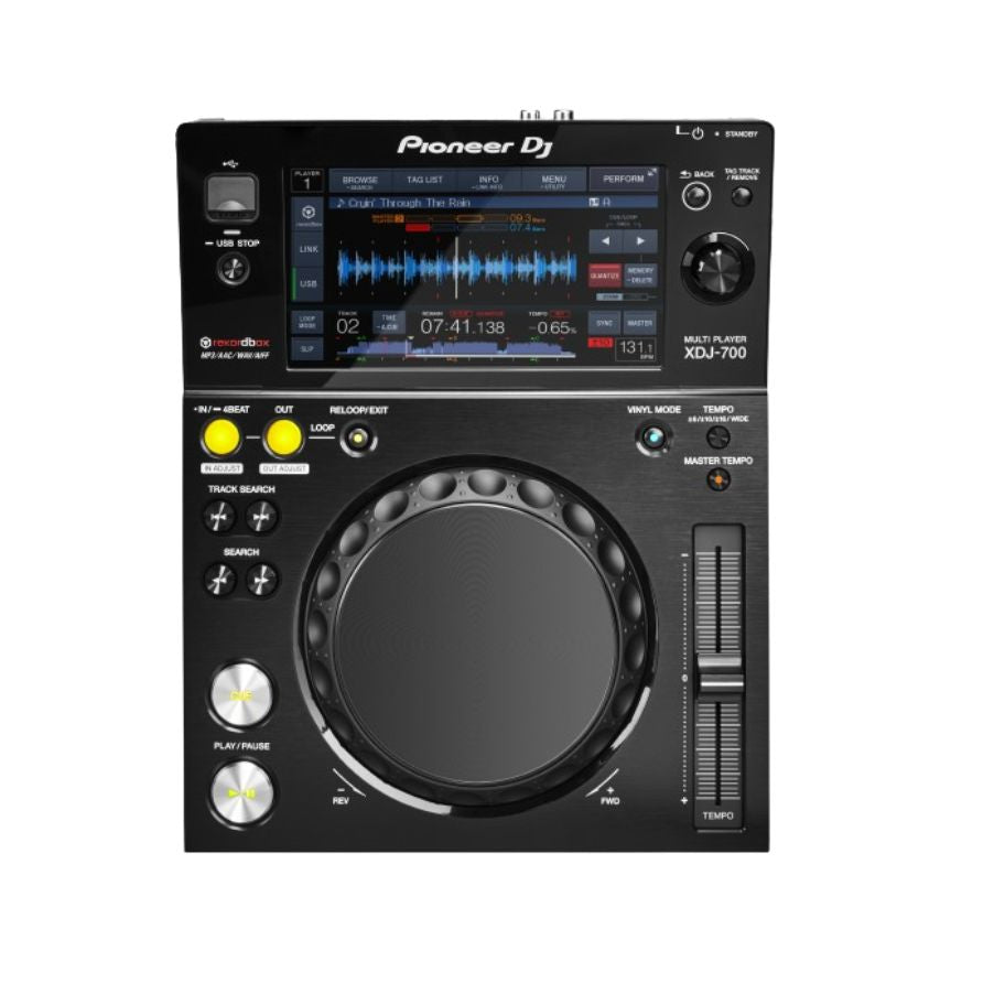 The XDJ-700 comes with a large touchscreen, a familiar club layout and it inherits a host of features from its big brother, the XDJ-1000. Its compact size and removable stand offer great set-up possibilities for even the smallest booth or home set-up.