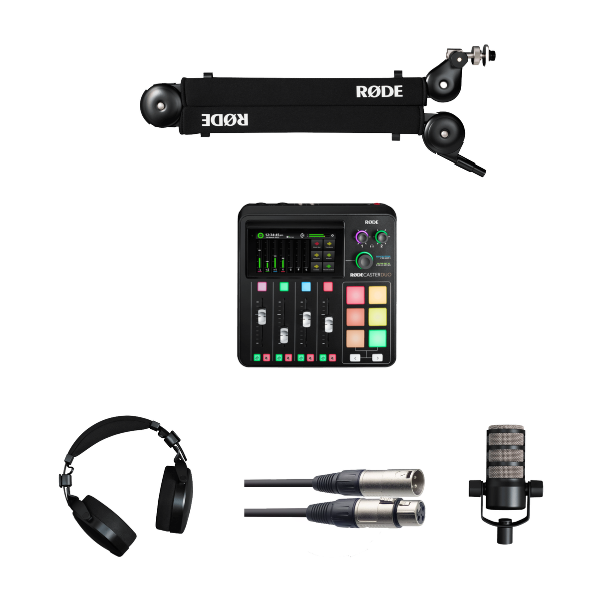 The Solo Podcast Kit offers everything you need to capture incredible audio for your one-person podcast, whether you're experienced and looking to elevate your setup or need a complete solution to start your podcasting journey. It includes the PodMic broadcast-quality dynamic microphone, PSA1+ professional studio arm, NTH-100 professional studio headphones and the RØDECaster Duo – the world’s most powerful all-in-one production solution.
