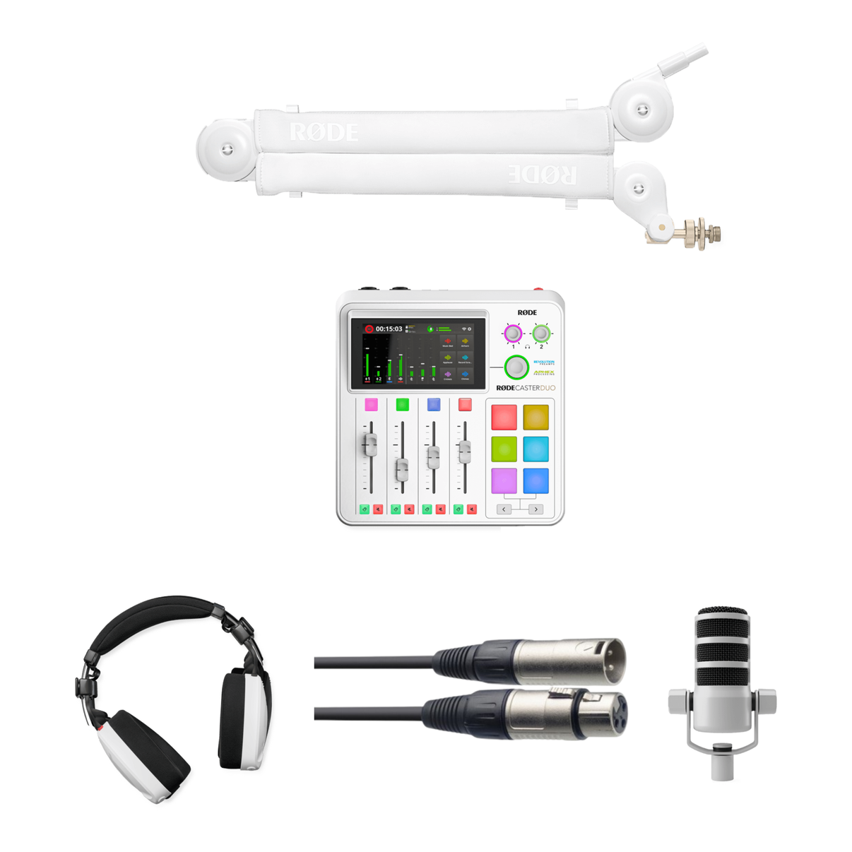 The Solo Podcast Kit offers everything you need to capture incredible audio for your one-person podcast, whether you're experienced and looking to elevate your setup or need a complete solution to start your podcasting journey. It includes the PodMic broadcast-quality dynamic microphone, PSA1+ professional studio arm, NTH-100 professional studio headphones and the RØDECaster Duo – the world’s most powerful all-in-one production solution.