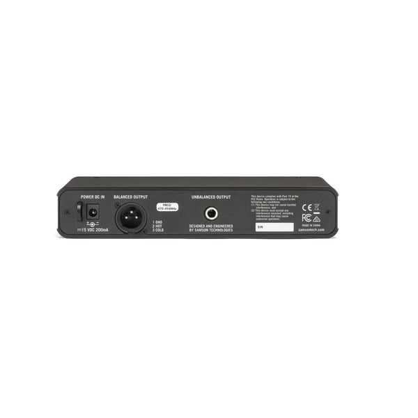 The rear panel provides both balanced (XLR) and unbalanced (1/4") connections to an amplifier, sound system, or recording console. The half-rack format and included rackmount kit allow single or multiple CR88x receivers to be installed in a portable audio rack or fixed location.