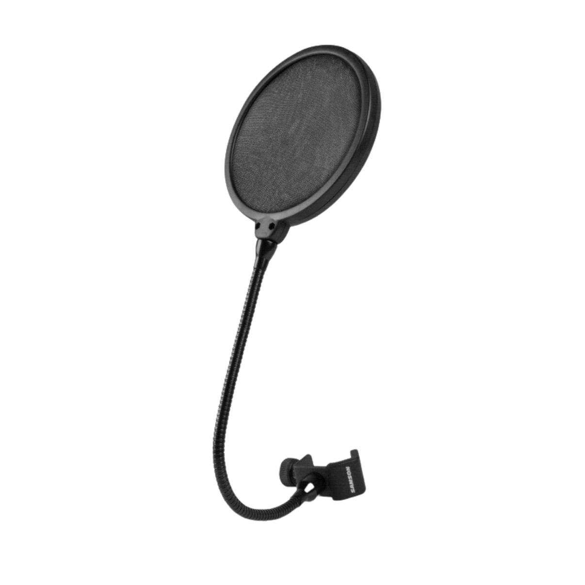 The PS01 Microphone Pop Filter is an essential microphone accessory for any studio or other vocal recording environment. The PS01 features a dual-layer 4.75" nylon mesh screen that reduces vocal pops ("p-pops") that occur during speech and vocals, as well as protects the microphone from saliva. Once attached to any standard microphone stand shaft or boom using the included C-clamp mount with extended metal bracket, the PS01 can be easily positioned as desired via a durable 12" gooseneck.