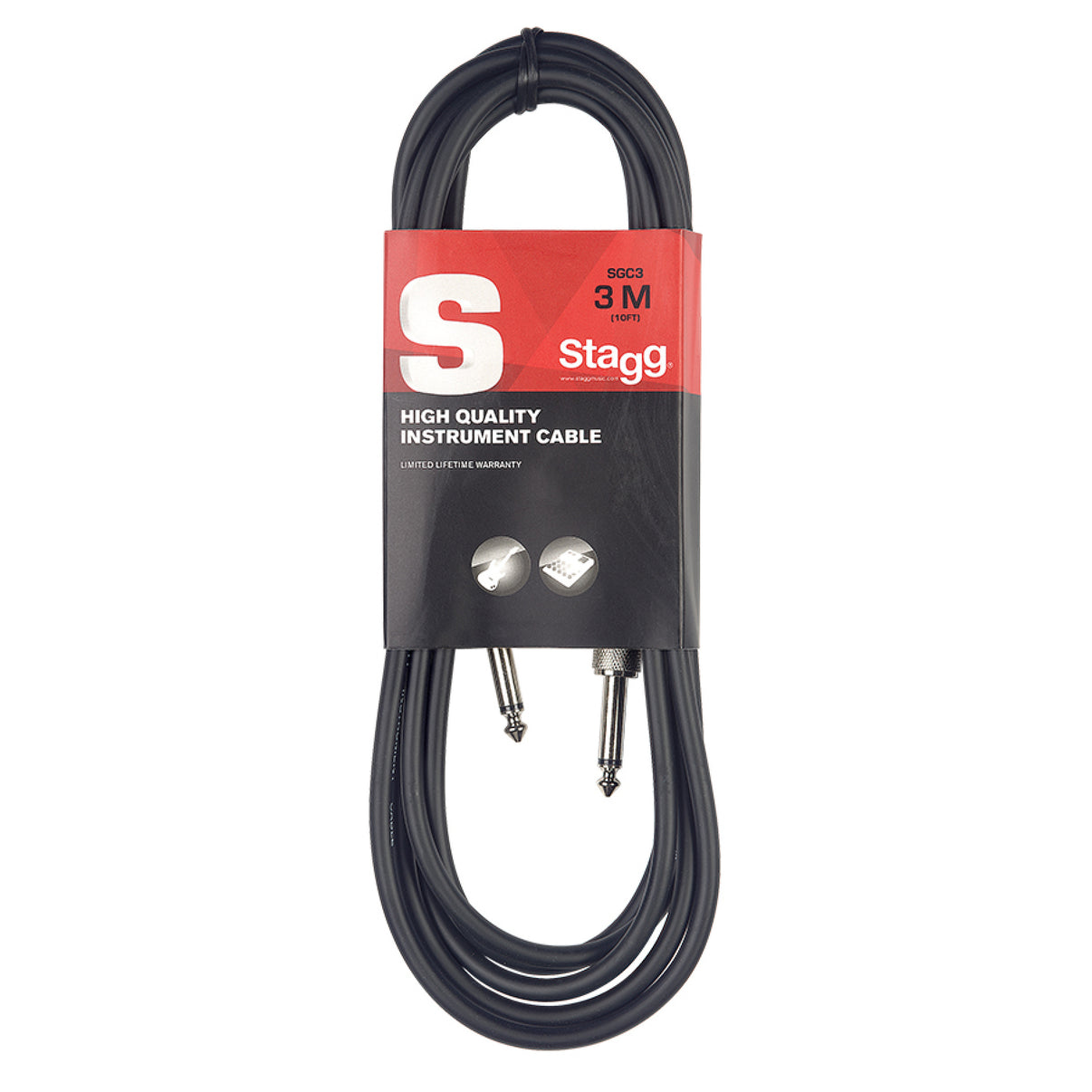 The Stagg Instrument Cable gives you extra quality and value due to the moulded end plugs which grip the cable at the jack. Most people tug the lead to get the plug out, putting stress on this area. The moulded connection eliminates lead breakin.