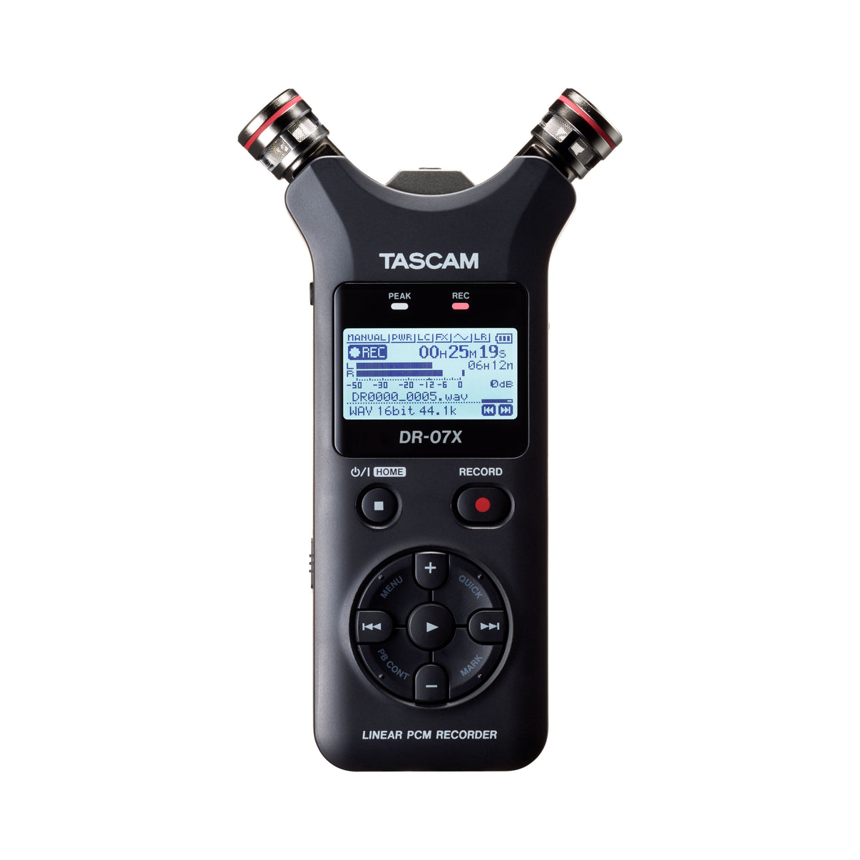 The TASCAM DR-07X is an easy to use and thoroughly compact portable audio recorder that features amazing HD audio, multiple fail-safe functions, and switchable microphone configurations for enjoyable and intuitive field recording.
